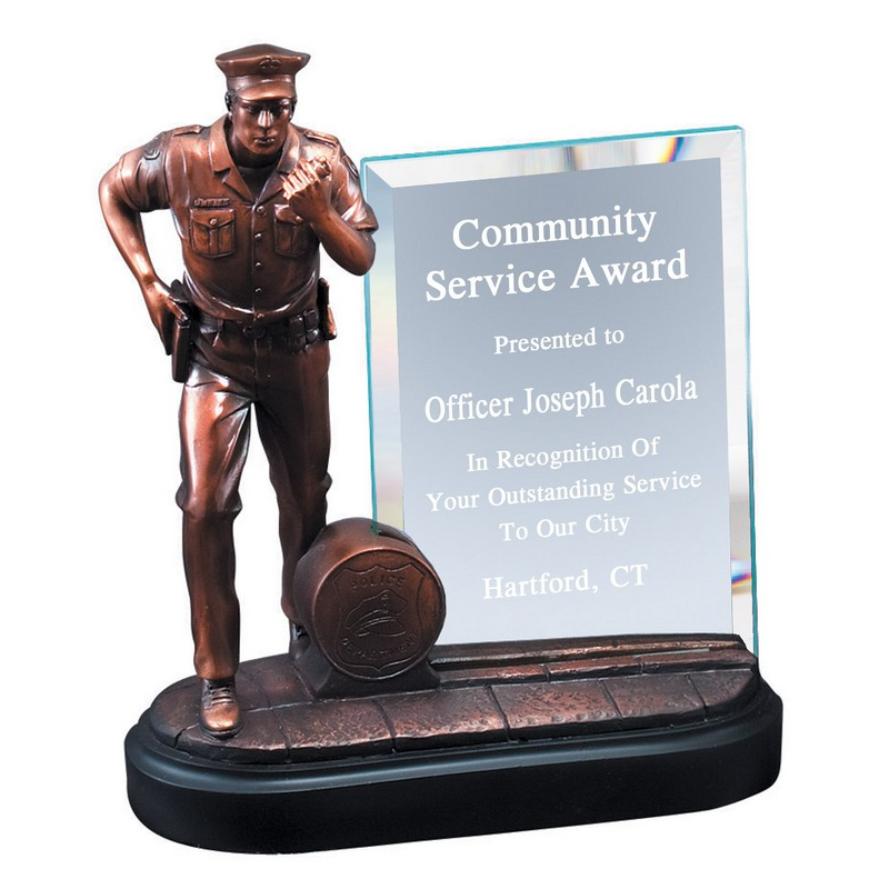 8” Policeman Resin Figure With 4” x 6” Glass Panel