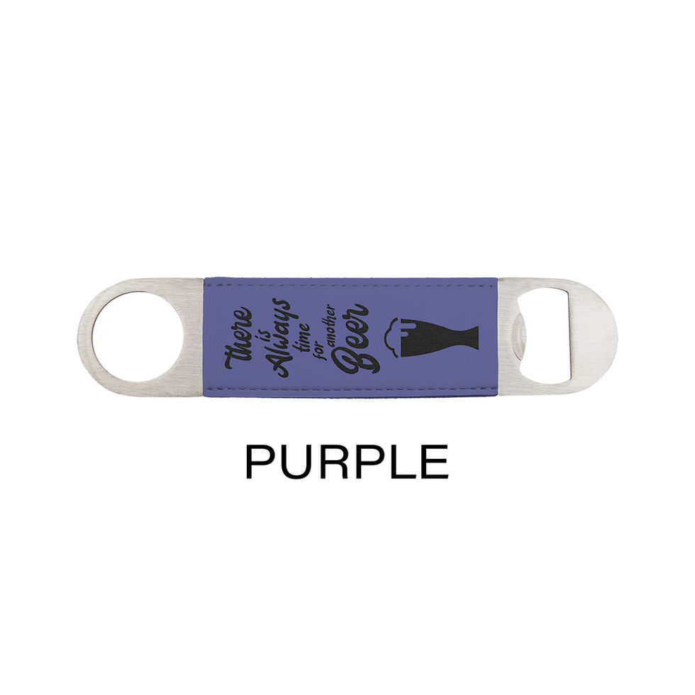 This 1.5” x 7” leatherette bottle opener combines durability with style and is available in 17 color options: light brown, dark brown, black/gold, rawhide, gray, rose, pink, black/silver, rustic/gold, teal, cork, bamboo, white marble, blue/silver, red, white, and purple. The richly textured synthetic material offers the look and feel of genuine leather while resisting water spots, cleaning easily, and holding up to daily use. Its sleek design, comfortable grip, and customizable surface make it a popular choice for weddings, bars, restaurants, corporate gifts, or personal collections.