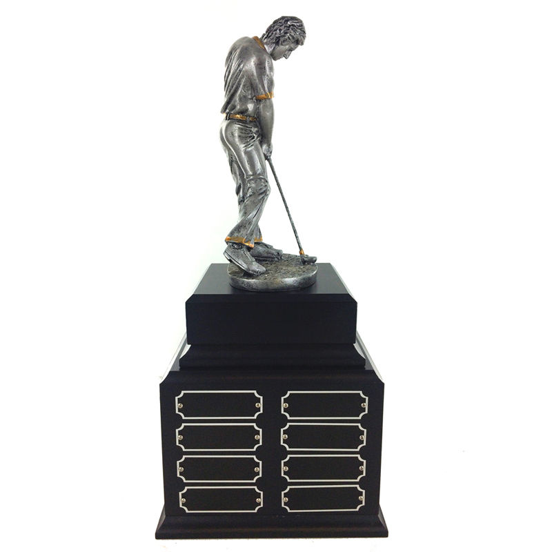 15.5” Antique Silver Male Golf Perpetual Trophy - Multiple Plate Options