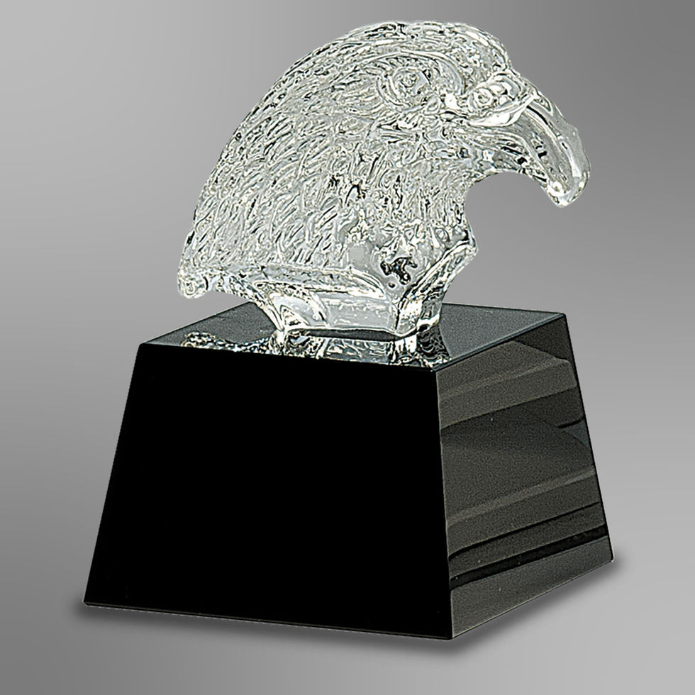 5.75” Clear Crystal Eagle Head on Black Pedestal Base