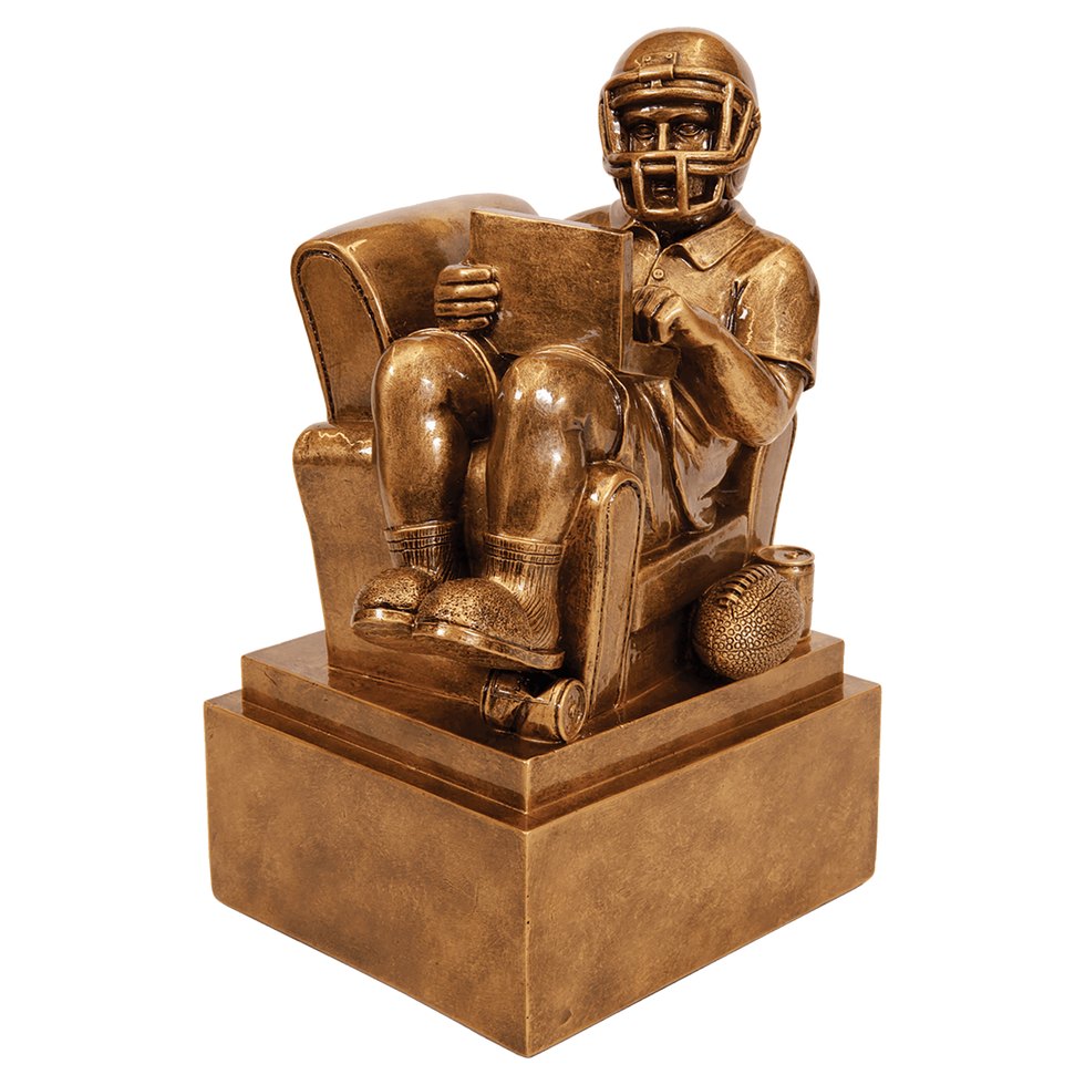 Antique Gold Fantasy Football Man in Chair Resin – 2 Sizes
