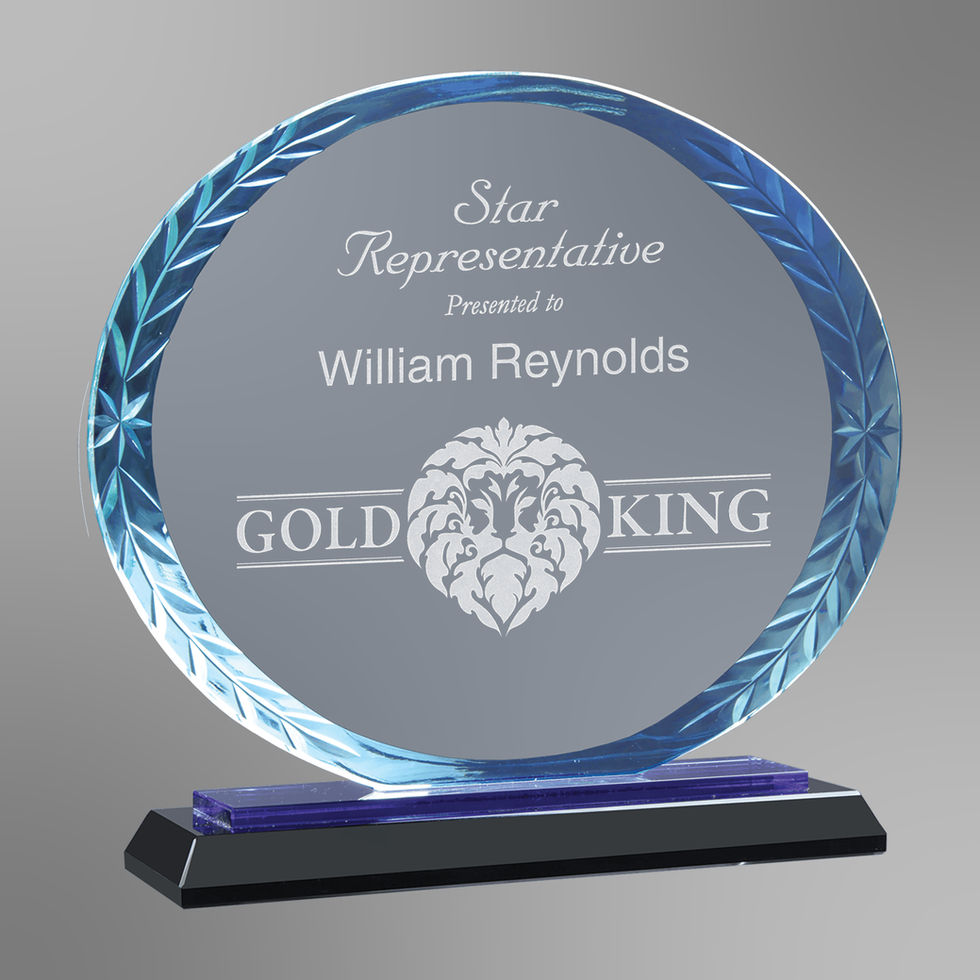 Circle Accent Crystal Award – Blue & Black or Clear on Black Base (2 Sizes)