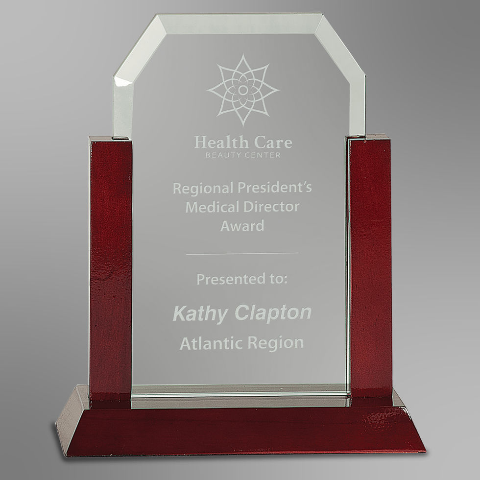 Gateway Jade Clip Corner Glass Award with Rosewood Finish Base – 3 Size Options