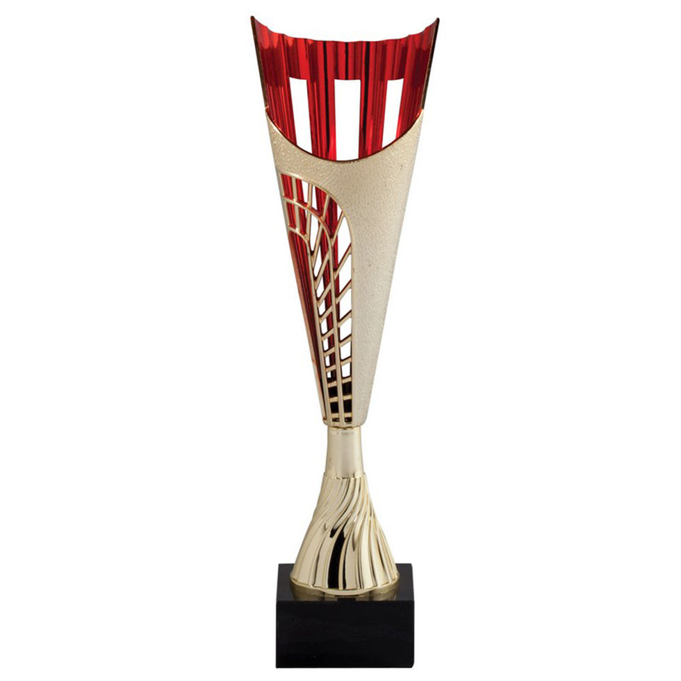 This Gold Series Plastic Cup Trophy features a tall, modern cup design available in three vibrant colors—blue, black, or red—mounted on a genuine black marble base for added weight and a premium feel. Offered in two sizes, 13.5” (1.36 lbs) and 14.5” (2.002 lbs), this eye-catching award is perfect for sports, school events, competitions, and general recognition. Each trophy includes your personalized engraving on the base for a clean, professional finish.