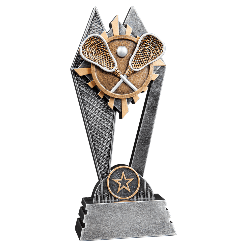 The Lacrosse Sun Ray Award features a bold gold, gray, and silver design with a radiating sun-burst look that makes it stand out on any presentation table. Made from weighted plastic and individually boxed for a polished presentation, each award includes a personalized plate attached to the base. This affordable yet impressive piece is perfect for team awards, tournaments, and end-of-season recognition.