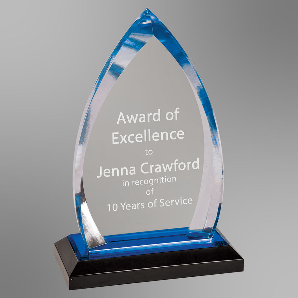 The Oval Impress Acrylic Award combines elegance and modern style with vibrant color reflections. Crafted from 1-inch thick acrylic, each piece includes a colored mirror base in your choice of silver, gold, or blue. Available in two sizes (7.75” or 8.75”), this award offers a polished, high-quality presentation perfect for recognizing excellence.